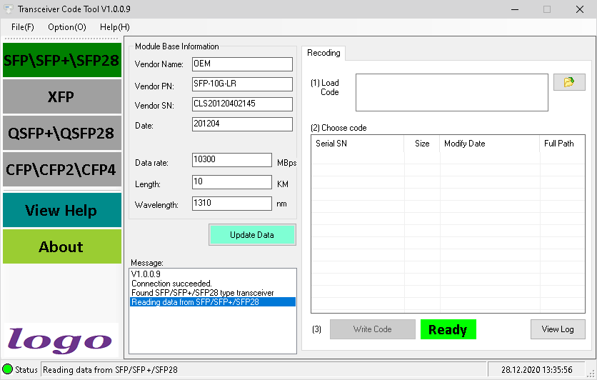 - Programmer transceivers SFP, SFP+, XFP, SFP28, QSFP+, QSFP28, CFP, CFP2, CFP4 - 1 pc.