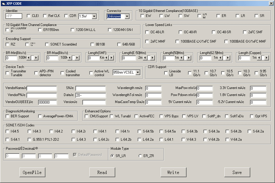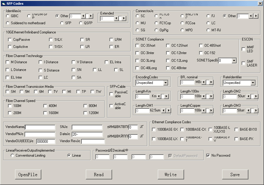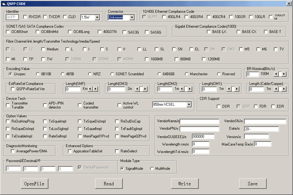 Programmer transceivers SFP, SFP +, XFP, QSFP (for transceivers and DAC cables).